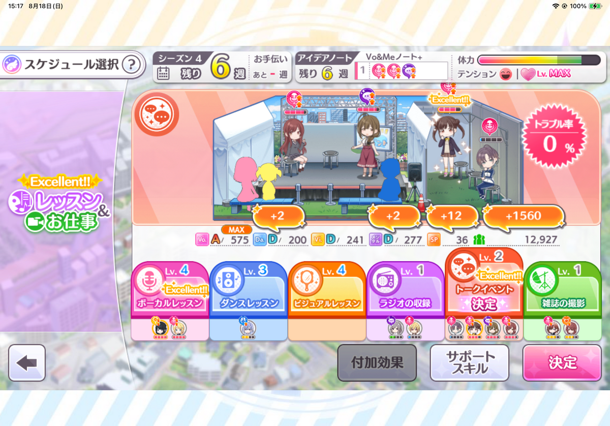 実はデメリットも持っていて、たとえばこのノートだとトークイベントの体力消費が100%増加します。
