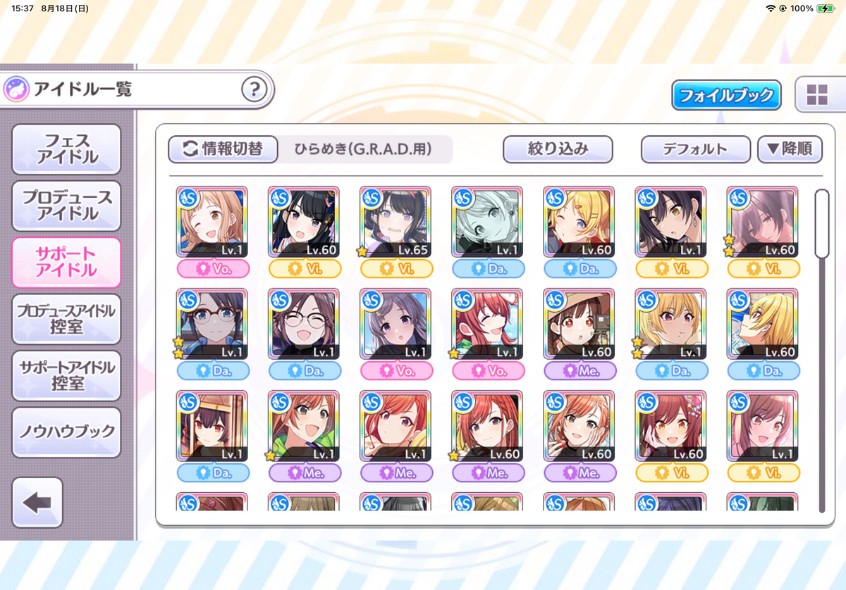 MEMちょと黒川しか完凸サポートいねぇじゃん(2回目)。